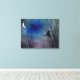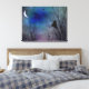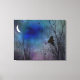 Crow fliegt durch das Glühen eines Halbmondes auf einer himmlischen Leinwand.