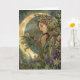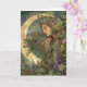 Feiern Sie die verzauberte Energie von Ostara mit dieser atemberaubenden Karte mit einem fesselnden Halbmond als Hintergrund. Eine strahlende Frau mit lebendiger Federkleider steht inmitten üppiger Vegetation und blühenden Blume und verkörpert den Geist der Erneuerung und des Wachstums. Ideal, um warme Wünsche zu senden und die Schönheit der Saison zu genießen.