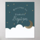 Crescent Moon Stars Navy Blue Baptisse Begrüßungsz Poster