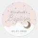 Crescent Moon & Stars Pink Girl Taufe Runder Aufkleber