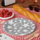 Weiße Halbmonde und Sterne auf grauem Hintergrund