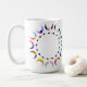 Genießen Sie queen Stolz mit dieser herrlichen Kaffeekonzerne-Tasse, die in lebhaften Stolz-Fahnenfarben einen Kreis von Mondmonden umgibt, die einen Ring von winzigen schwarzen Herzen umgeben.