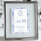 Crest Monogram Delft Blue Floral Script Tischnummer