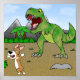 So eingebildet und voller Haltung wie der Pembroke Welsh Corgi ist, der Hund ist immer noch schlau genug zu wissen, dass, wenn man einen Tyrannosaurus Rex sieht, das intelligenteste, was zu tun ist, für IHR LEBEN ZU LASSEN! Diese prähistorische Szene hat einen T-Rex Dinosaurier mächtig auf die kleine pooch, wie er Panik und läuft dafür so schnell wie seine Nubbeine gehen wird! Funny Corgi Poster von Susan Stoneman.