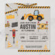 Hey Unternehmer und Former! Bauen Sie Ihre Crew für diese phantastische Party-Geburtstagseinladung mit einem großen Baggergräber und anderen Baumaschinen auf einem Planungs-Hintergrund. Sie können das für jedes Alter anpassen und den Text an Ihre Veranstaltung anpassen, um es perfekt für Ihren schweren Arbeitstag zu machen!