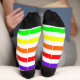 Ein Muster aus horizontalen Regenbogen und weißen Streifen.