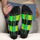 Behalt deine Tootsien toasty in diesen super coolen Socken! Diese Socken mit Kunstwerken von Buttercup's Bekleidung und Collectables zeichnen sich durch ein trendiges, kariertes Muster aus, das in verschiedenen grün-schwarzen Farbtönen gehalten ist, mit kontrastierender Ferse und Zehe. Die Größe von Männern und Frauen ist verfügbar.