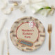 Diese personalisierten Teller sind ideal, um Party für jeden zu werfen, der Lieben hat, Cribage und andere Brettspiele zu spielen. Sie enthalten Illustrationen zum Cribbage-Spielbrett, zu Spielkarten und zum Set von Spielpegs vor einem hellbraunen Hintergrund, wobei Ihre Nachricht in fett roten Buchstaben dargestellt wird.