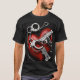 Eine Vintage Schwarz-Weiß-Illustration mit einem Single-Handschellen und Handgewehr, die mit einem blutenden roten Herz verwoben sind. Die Gegenüberstellung von Dunkelheit und lebhaftem Rot schafft ein kraftvolles visuelles Narrativ über Liebe, Zurückhaltung und Gefahr. Ideal für diejenigen, die mutige, edle Designs schätzen, die eine Geschichte von Leidenschaft und Konflikt erzählen. Ideal für alle, die ein einzigartiges und rebellisches Statement-Stück für ihren Schrank suchen.