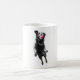 A leaping Labrador carries the ball with a subtle crimson highlight. Soft shading and a clean B&W base keep the scene bright and celebratory for winter mornings.