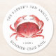 Personalisierte Crimson Crab Themenpapiere Untersetzer für Ihr nächstes Crab Boil Party oder Meeresfrüchte-Event. Es zeigt eine Aquarellbilder einer roten Krabbe. Umgeben sind dies Orte für Ihre einzigartigen Event-Informationen.