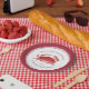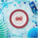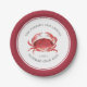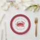 Personalisierte Krimson Crab Themenpapiere Teller für Ihr nächstes Crimson Crab Party oder Meeresfrüchte-Event. Es zeigt eine Aquarellmalerei, die eine krummrote Krabbe darstellt. Um das herum befinden sich Spots für Ihre einzigartigen Veranstaltungsinformationen auf dieser Tafelgeschirr.
