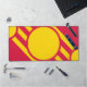 Bring bold movement and modern ceremony to your workspace with this Crimson Red and Gold desk mat, featuring a dynamic diagonal design anchored by a radiant central circle. The striking composition evokes emblems, motion graphics, and powerful banners — perfect for workspaces, events, and group identity across all industries and institutions.