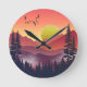 Crimson Mountains Landschaft Runde Wanduhr