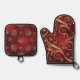 Crimson und Gold Weihnachten Ofenhandschuh & Topflappen-Set