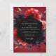 Embrace a darkly romantic aesthetic for your nuptial union. This stunning design features a dramatic arrangement of lush, painterly florals. Deep crimson and shadowy black peonies burst forth from a rich, jewel-toned background, highlighted by muted green leaves. An opulent and moody botanical composition perfect for an elegant evening affair.