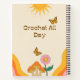 Notebook mit groovem Häkelchen den ganzen Tag darauf.