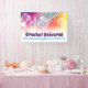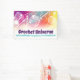 Freuen Sie sich auf ein buntes Aquarelluniversum mit Garnbällen und Häkelhaken auf dem Ausstellungsstand, der für Ihre Projekte personalisiert ist, die mit Ihren Schriftart und Texten sind.
