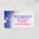Watercolor style space or universe background with balls of yarn, crochet hooks and glowing stars on this craft show business card for a crochet or yarn crafts business.