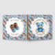 A sweet personalized boy's baby shower guestbook with a crocheted teddy bear baby shower theme in blue and brown.