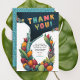 Diese Dankeschön-Karte hat ein niedliches Alligator-Krokodil mit einem großen offenen Mund und einem farbenfrohen tropischen Rahmen aus Obst und grünen Blätter. Der Rücken ist mit einer aquamarinen Textur der Alligatorhaut. Es hat anpassbaren Text, Sie können es bearbeiten und Ihre eigene Einladung an Ihre Kinder wilde Geburtstagsparty!