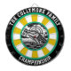 Tauchen Sie ein in dieses kühne, kreisförmige Design, das ein Krokodil in einem ruhigen See mit scharfem Zielfokus zeigt