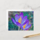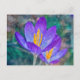 An einem Frühlingmorgen blüht ein lila Crocus.