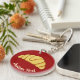 Croissant Ikone. Benutzerdefinierte Hintergrundfarbe. Benutzerdefinierter Text auf beiden Seiten.