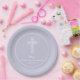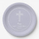 Teller mit offenem, weißem Kreuz auf elegantem, blass-braunem Lavendeluntergrund - Sie können sich zu JEDER FARBE ÄNDERN - eignen sich ideal für das erste Kommunion, Christening, Taufen, Bestätigungs- oder Dedication-Party oder Empfang Ihres Kindes. Kann mit dem Namen Ihres Kindes und den Veranstaltungsdetails personalisiert werden. Erhältlich in 2 Größen und JEDER Farbhintergrund für Ihren Anlass. Siehe dazu Einladungen und andere Elemente anpassen —> http://bit.ly/2GSK0No <—