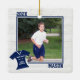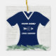 Blaue und weiße Cross Country Laufen Jersey mit bearbeitbarem Namen, Nummer, Foto und Jahr. Pine Bough ganz unten für einen festlichen Urlaub aussehen. Das Cross Country Jersey Design setzt sich bis auf die Rückseite des Ornaments.