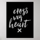 Inspirational poster displaying the phrase "Cross My Heart" in white brush script with an organic ink texture to achieve an authentic, hand lettered look. Designed to look great on all portrait oriented poster sizes. Please do check if the image needs to be repositioned or resized after changing the poster size.