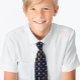 Eine elegante Krawatte aus Marineblau und Gold, die als Muster eine Goldfolie aus Imitat auf marineblau-blauem Hintergrund hat. Empfohlen für die erste Kommunion oder religiöse Bestätigung eines Jungen.