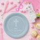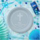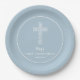 Cross on Steel Blue Communion Taufe Christening Pappteller