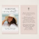 Keep the memory of a loved one close with this custom color personalized prayer card (shown in blush pink) featuring one treasured photo, the sentiment FOREVER IN OUR HEARTS, name and dates on the front and an editable prayer accented with a simple cross on the back. With its simple yet elegant design and modern script typography, it makes a meaningful keepsake to share at a funeral, memorial service or Celebration of Life and offers comfort and a lasting tribute for family and friends. Its small and portable size of 3.5x2" (wallet-sized) makes it convenient for loved ones to carry it with them as a reminder of your loved one’s life and spirit. Personalization makes each card unique.
