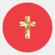 Gold Cross On red Sticker.
