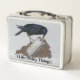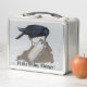 Ein Farbstift zeichne von einer seltsamen Krähe, die eine glänzende Harmonika untersucht, die er gefunden hat, schmückt diese Lunchbox! Passen Sie den Text an, indem Sie ihn selbst in Anzug umwandeln!