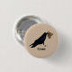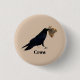 Personalisierter Knopf mit einem bezaubernden Foto einer Krähe mit einem zerbrochenen Papier auf ihrem Schnabel.