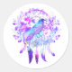Crow Dreamcatcher Blue Lila Floral Runder Aufkleber