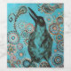 Das coole Weinetikett wird von einer fetten glücklichen Krähe in blau mit Kreise und Pisleys in Gold und Rosa gemalt