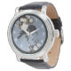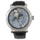 Fashion-Uhr für jene Zeiten, wenn Sie Gefühl ein wenig geheimnisvoll. Der Hintergrund der Armbanduhr ist ein launisches Blau, und die Abbildung ist ein Rabe auf einem Zweig mit Mondblumen. Es ist so hübsch! Die Zahlen sind weiß. Wir zeigen dieses Design auf einem schlichten, eleganten Uhrenstil mit einer schwarzen Armbanduhr, aber es ist auch in verschiedenen anderen Uhren- und Uhrenfarben - für Erwachsene und Kinder - in unserem Shop erhältlich. Design-Konzept Copyright Scarebaby Design.