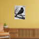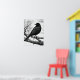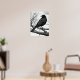 Poster in a black-and-white illustration featuring a sleek black crow perched on a gnarled, leafless branch. The bird's detailed feathers contrast sharply with the stark, skeletal tree limbs, creating a dramatic composition.