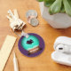 Eine lila und schwarze Krähe mit gelben Augen hängt in diesem Schneeglobe. Er hängt in einem türkisfarbenen Globus voller Schneeflocken. Auf einem dunklen lila Hintergrund präsentiert und auf Wunsch personalisiert.