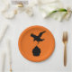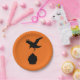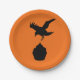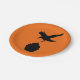 Spaß Teller mit den Silhouetten eines Krähentauches, der einen Kuchen bombardiert. Vergnügen Sie sich bei einer Halloween-Babydusche oder der guten Mutter-to-be.
