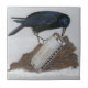 Farbstift gezeichnet von einer seltsamen Krähe, die eine glänzende Harmonika, die er gefunden hat, untersucht.