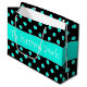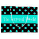 Sehr schöne aquamarine polka-gepunktete Papiertüte mit Griffen. Personalisieren Sie den Text nach Ihrem eigenen Motto im Shop, fügen Sie Ihr Firmenlogo hinzu, um es zu Ihrem eigenen zu machen. Farben können alle auf Ihre eigene Store-Farbe oder Veranstaltungsfarben geändert werden. Designer Geschenktasche geeignet für jeden Anlass. Die Farben sind aquamarin, schwarz und weiß.