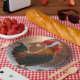 Crowing Christmas Rooster Wearing a Santa Hat Pappteller
