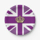 Krone auf der patriotischen Britischen Union Jack Fahne zu feiern die Krönung von König Charles III von Großbritannien im Jahr 2023. Erhältlich in lila sowie in Rot, Weiß und Blau.