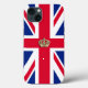 Krone auf der patriotischen Britischen Gewerkschaft Flag genannt "Union Jack" beim Fliegen. Erhältlich in königlichen Purpur sowie in rot, weiß und blau. Feiern Sie 2023 die Krönung von König Charles III von Großbritannien.