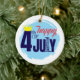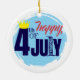 Crowned 4th Of July round ornament features a yellow crown on the figure 4, all against a light blue background. Perfect touch for fellow Americans to celebrate a happy 4th of July for United States's Independence Day. © Morning 6