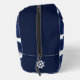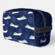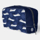 Stylish navy blue and white toiletry bag with a cruise ship and ship's wheel pattern. Perfect to take on your cruise vacation. Customise by adding the name of your choice.